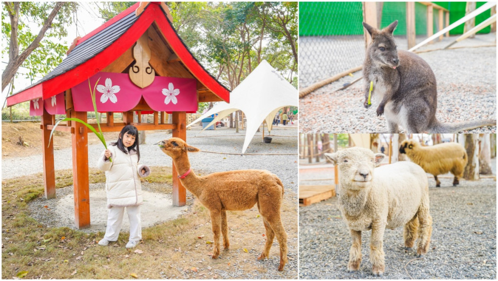 萌寵動物樂園分為樹3座主題區,首先會看到梅花鹿、羊駝、笑笑羊所在的療癒萌寵區;接著是水豚、小袋鼠與羊寶寶的露天風呂區,這一區裝飾帶點日式風情;最後是羊咩咩區,裡面有娃娃羊、侏儒山羊、波爾等品種,每天還有羊咩咩上樹表演哦。入園會提供牧草,若餵不夠可再自費買牧草(1杯50元)來餵。