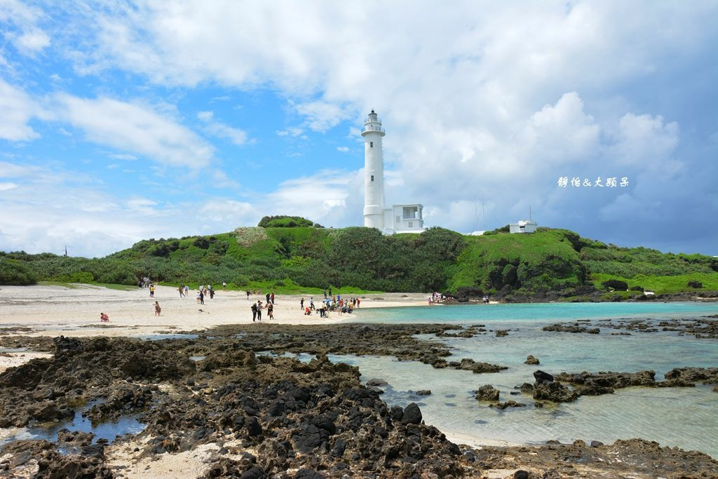 這裡的海水清澈透明,可以看到小魚悠游其中,往另一個角度拍照,還能讓純白燈塔一起入境。玩完水,別忘了再去一旁的綠島燈塔拍拍照,園區也有開放參觀哦(週一公休)。