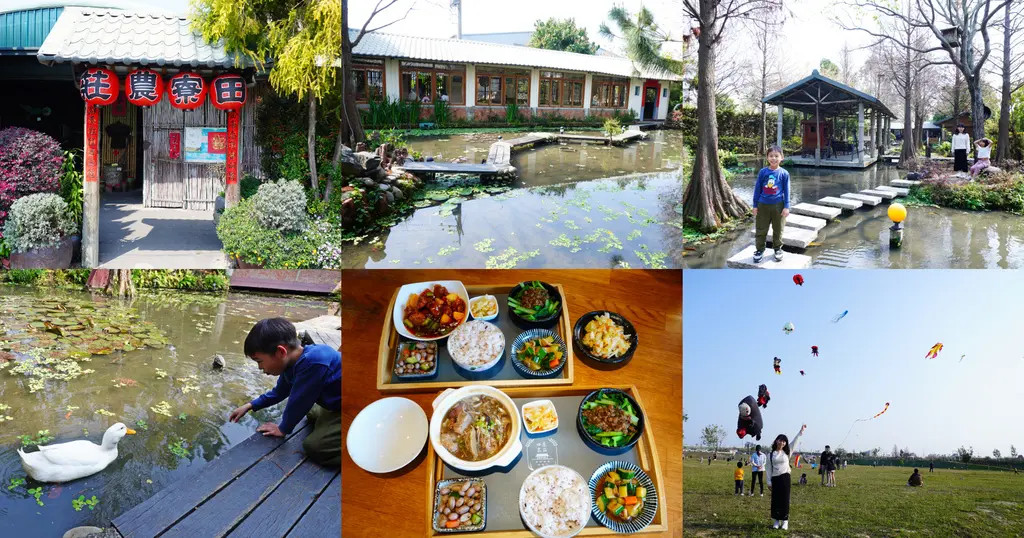 田寮農莊景觀餐廳位在台中市南屯區,餐廳隱身在田野間,外觀樸實像個小農莊,走進去落羽松、水池造景讓人驚豔,池子中養有小鴨、烏龜以及悠游的魚兒,帶小朋友來用餐後可以去找小動物、餵魚、拍拍照。