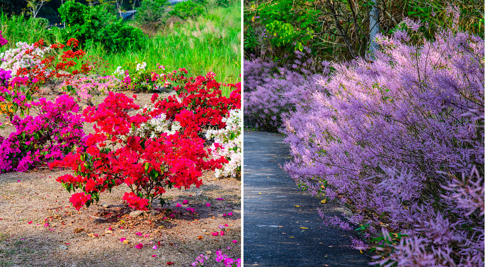 賞花步道全長約2公里,沿途平坦易行,小朋友來走也沒問題。花季期間花道不開放車輛進入,可先將車停放瑞龍宮或附近白線路段,再步行過去。