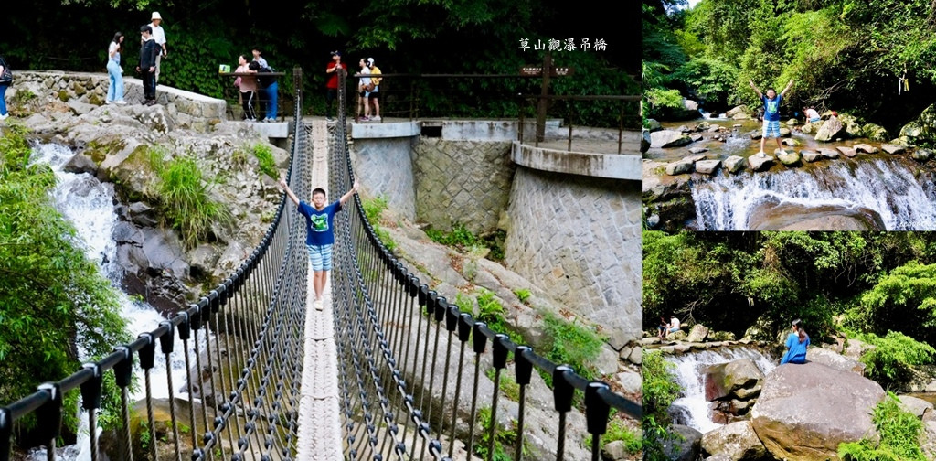 草山觀瀑吊橋是2025年4月打造完工的景觀吊橋,地點在台北陽明山上,串連猴崁古道與十八份圳步道;吊橋離停車點不遠,且道路平緩易行,橋旁瀑布水氣涼爽,下方淺溪區也很適合戲水遊玩。