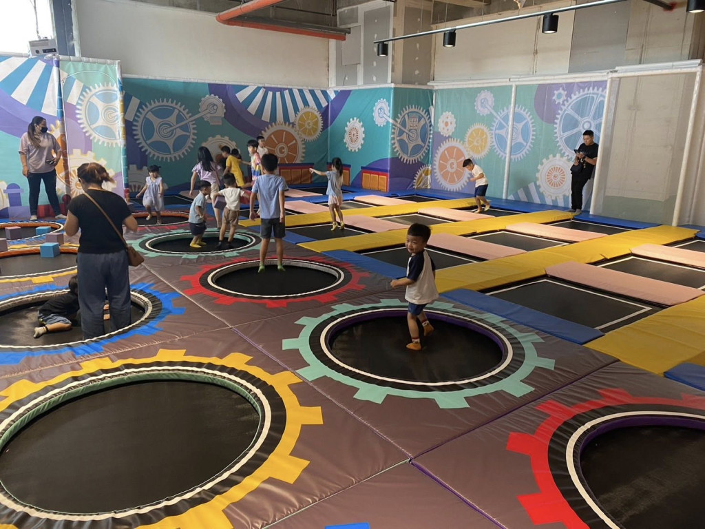 竹曲旗艦店還有低空探索競技區,3層的闖關設計,訓練小朋友的膽量與體能;靜態設施也不少,玩積木、陶粒沙池、化妝區、修車廠、超市與廚房扮家家酒都好玩。