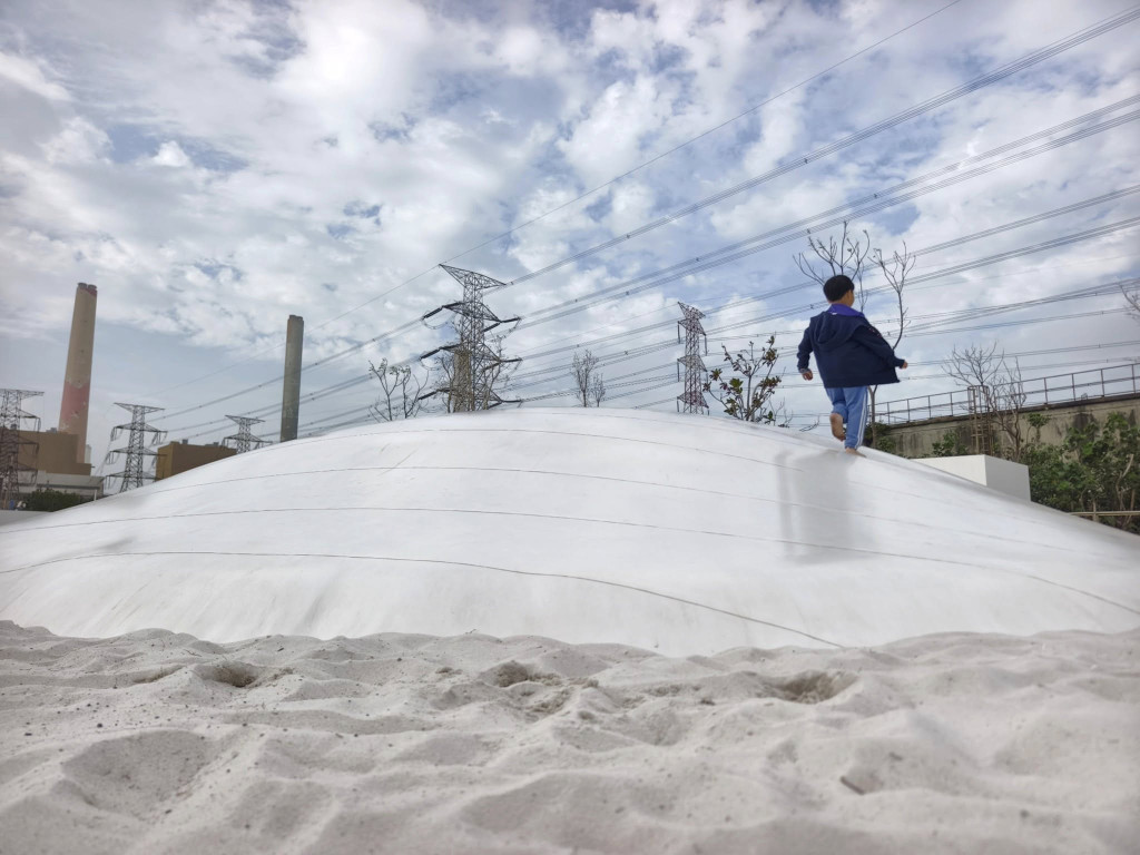 彈跳床周邊被細白沙坑圍繞,小朋友還可以開心玩沙趣;沙坑邊設有休息座椅,另一側有一座立體攀爬架,可以挑戰遊玩。這裡沒有公廁,建議先至麗水漁港使用,另外公園離三井OUTLET台中港約16分車程,帶小朋友去逛三井時可安排順遊。