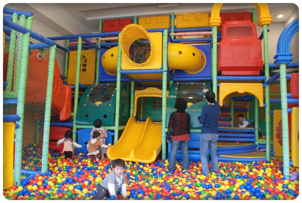 兒童樂園的開放時間為08:00-22:00,要使用記得要著襪。小朋友一進去就會衝去裡面玩有大型的攀爬設施跟溜滑梯。