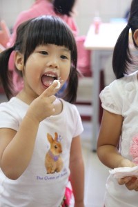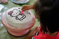 來這裡做DIY蛋榚需於二週前預約,蛋榚的材料都是當日現做,小朋友可以親手從畫蛋榚的圖案開始,塗抹鮮奶油、擺上水果丁、用鮮奶油花嘴幫做裝飾、使用三色果膠上色,都是自己來,很有成就感。