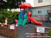 戶外的兒童遊樂區提供大型的公園式的溜滑梯,還有兩個搖搖椅,另外也有簡單的秋千。旁邊的水池則可以給小朋友餵魚。