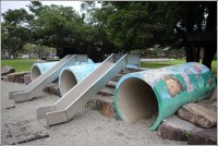比較大型的溜滑梯也有幾座,適合小小朋友玩的小型水泥管大象溜滑梯也不少,且這裡也有玩沙區,喜歡玩沙的記得帶玩沙工具過去玩哦。
