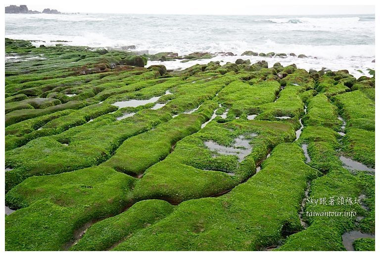 「綠石槽」在地理名詞中,應稱為「潮溝」或「海蝕溝」,這些排列整齊的石槽,在冬季東北季風盛行時,岩面滋生綠色的海藻,等到四月份季風漸歇,長滿大片綠色,也就形成美不勝收的「綠石槽」!