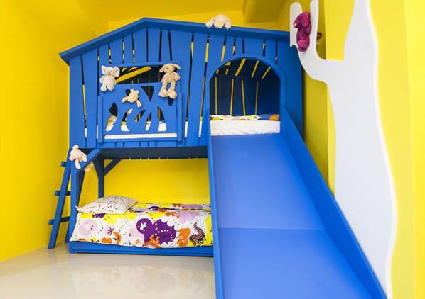 童心園提供5間色彩繽紛的卡通主題套房,除了「三隻小熊」和「歡樂火車」外,「海盜船長」、「森林探險」及「冰雪奇宮」皆有溜滑梯床,房內每個角落都精心佈置,並提供各主題房相關的玩具或道具服裝,彷彿進入專屬的童話國度,實現大小朋友夢想樂園。