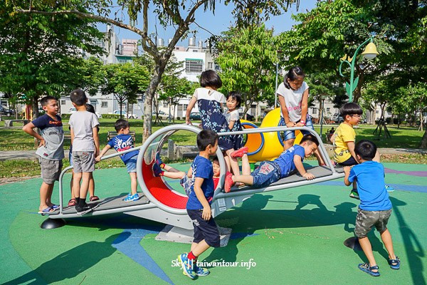 公園內的遊戲場於2018年5月也加入特色遊戲場的行列,裡面的遊樂設施整修翻新,增加蜜蜂造型磨石子溜滑梯、車車與瓢蟲造型攀爬架、可以窩在裡面的造型搖搖椅還有一座很特別好玩的圓筒多人蹺蹺板,而原來的一組塑製溜滑梯組還在,適合帶小小孩玩。