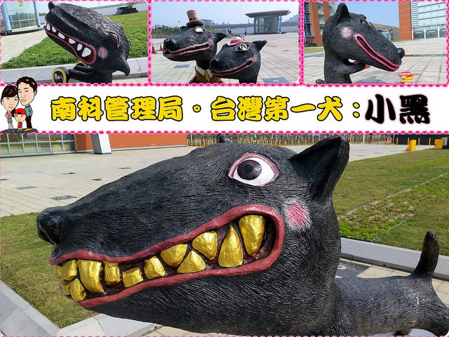 位於台南的南科管理局,當初打造園區時發現有早期文化遺址,考古隊發現距今約4800年前,先民飼養的狗化石,推測是台灣最早的養狗記錄。所以在廣場創作了一系列的犬隻公共藝術裝置,並將其取名為小黑。