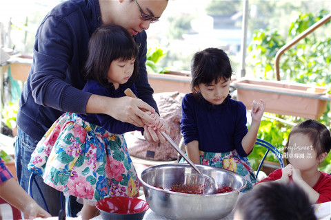 草莓DIY 1大1小費用499元,依據小朋友年齡分有初階班與進階班,初階班內容包含手作港式雞蛋仔、草莓果醬、風車與自製草莓氣球;進階班內容含草莓果醬、草莓盆栽、盆栽蛋糕,由草莓姊姊帶領小朋友參與活動,二個小時的活動充實又有趣。