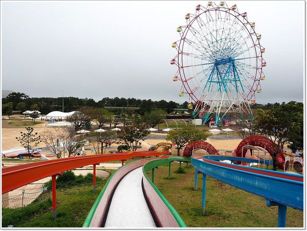 公園裡也有各式兒童健身遊樂器具,有摩天輪,水上闖關遊戲區、迷宮、賽車、寶寶遊戲區...等。除了遊樂區,園區裡的動物の森有不少動物,可以餵食動物,也可體驗騎馬,還有讓豚鼠放在小孩的膝上,都是有趣的體驗。