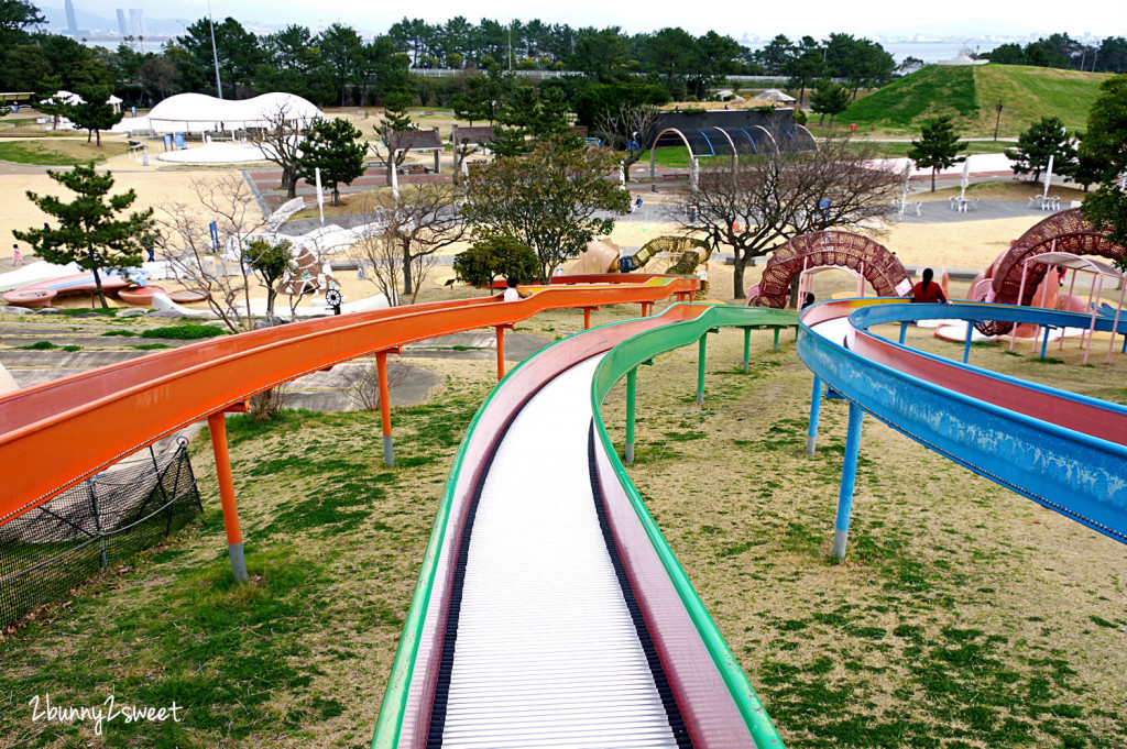 海の中道海浜公園位在日本九州,只要搭乘JR即可到達,交通便利。公園佔地廣大,有許多兒童遊樂設施,有各式溜滑梯,其中3座超長溜滑梯,讓小朋友興奮不已。