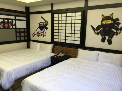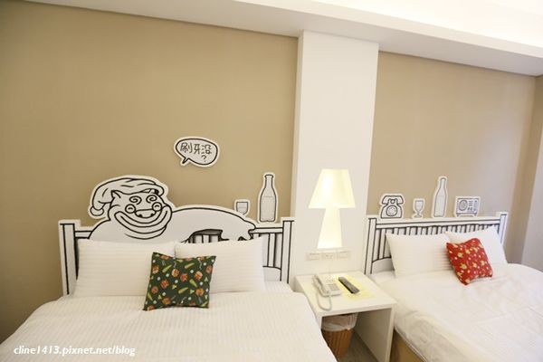 還有以2D平面主題的一館四人房,房型是採兩大床,床的size為150*180,房間約8坪大,風趣的主題設計,創造出輕鬆有趣的入住空間。