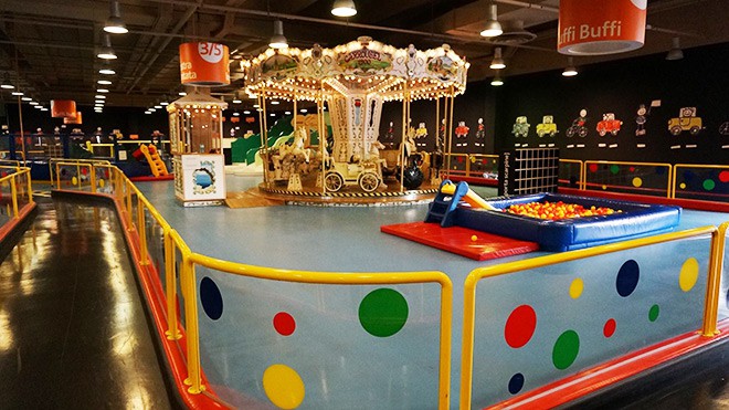 旋轉木馬另一側,是另一個球池,這是專屬小小孩的球池,分齡設計,讓家長更安心。