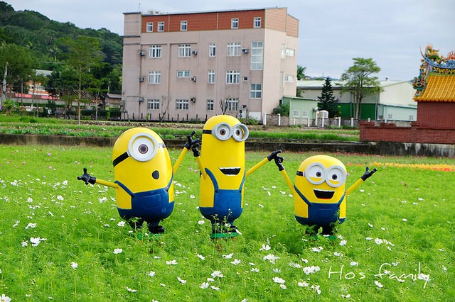 大片的波斯花海美麗耀眼,展區裡有各式可愛彩繪圖案,還有小小兵、鋼鐵人、變形金鋼、牛奶盒、行李箱、任意門...等裝置藝術,花田旁還有逗趣的海綿寶寶小貨車,很適合帶小朋友來走走拍照。