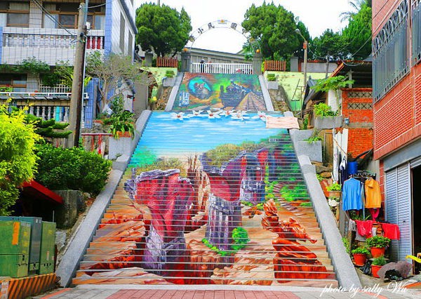 哇~竟然可以站在龍騰斷橋上!位在苗栗三義的建中國小,在2016年初,校門前99層階梯出現著名地景彩繪。有勝興車站、蒸汽火車、桐花、石虎與龍騰斷橋。由階梯下往上望,既壯觀又美麗。