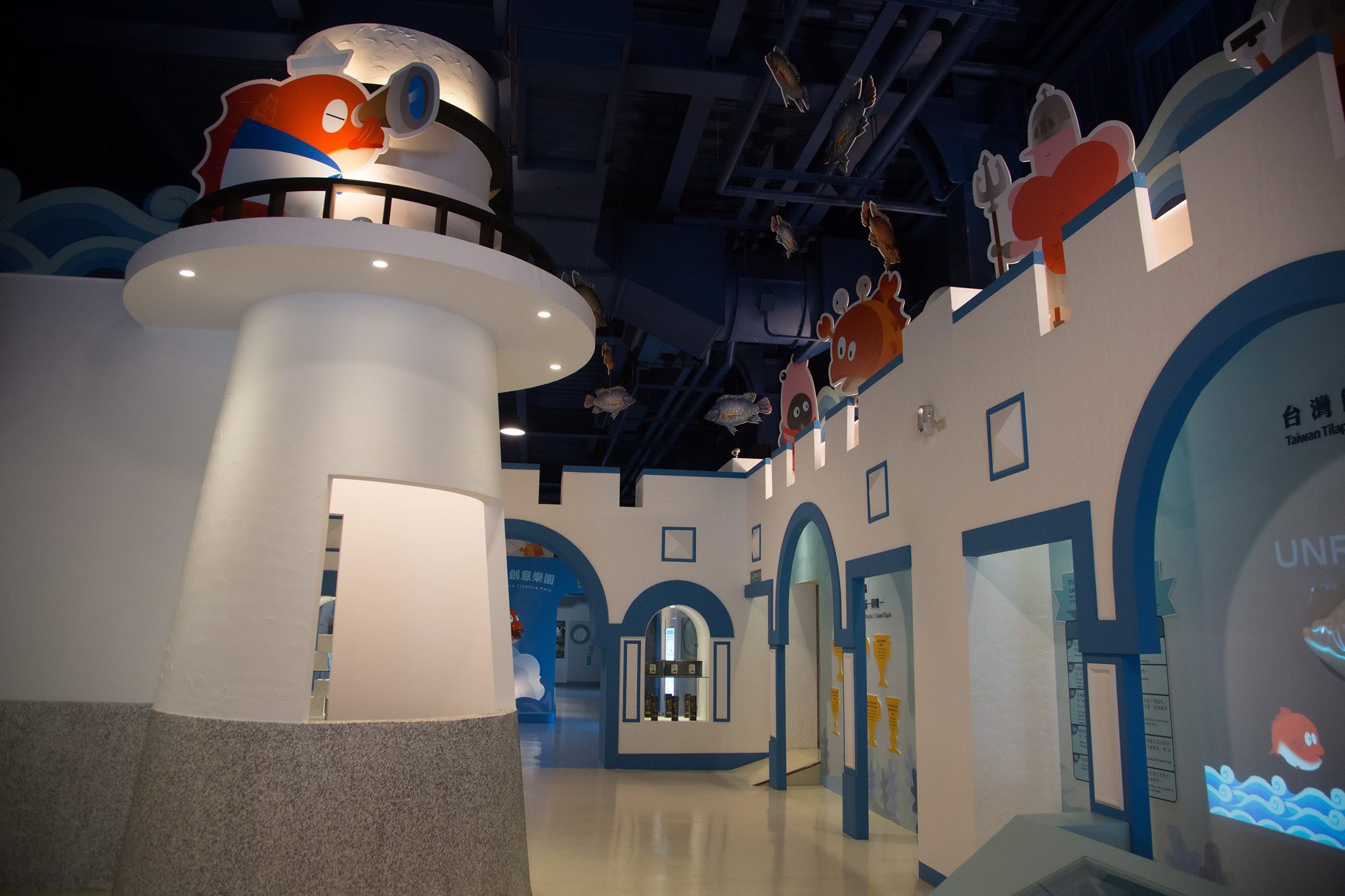 有機會帶小朋友來認識鯛魚,投影互動設施吸引小朋友的注意力。還有一區專屬兒童的遊戲空間,提供積木、小推車、廚房組...等玩具,讓小朋友不無聊。