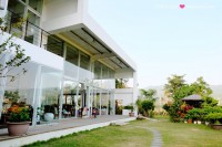咖啡館本身為純白玻璃建築,採光極佳,每個座位都可欣賞外面的風景。有機會帶著一家人來這裡,邊用餐邊欣賞隨風搖擺的稻浪,看著小朋友在草地裡開心奔跑,度過悠閒的假日。