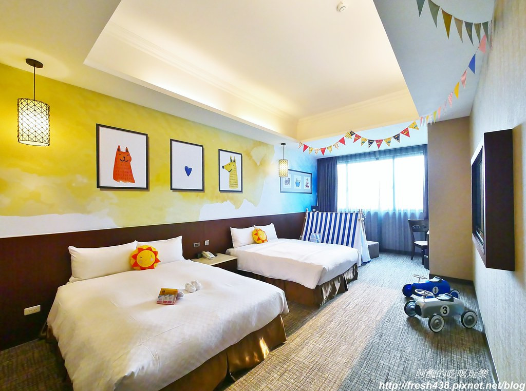 飯店除了親子房外,也有一般的家庭四人房,像是時尚旅宿房,房間大概有11坪大,提供2大床,床的size是150cm*200cm。