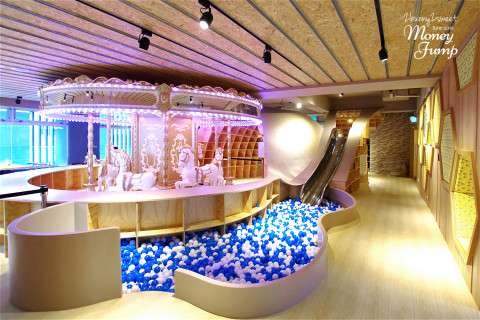 Money Jump親子餐廳位在台北市內湖區,於2016/05/28開始營運。高質感全木作3D空間設計,優雅的弧線彎延在餐廳內部,讓整個視覺空間活潑了起來。所有遊樂設施利用木作延伸串連起來,一體成形的俐落感極具巧思。