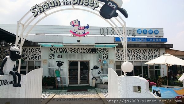 位在雲林縣斗六市的「018咖啡甜品玩國」,是全台唯一正式授權的笑笑羊主題餐廳,入口處就可以看到超大隻笑笑羊坐在上面歡迎大家的到來。