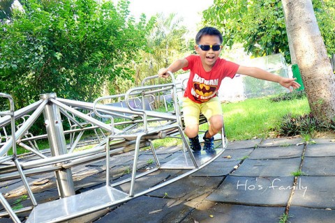 校園裡有二處兒童遊戲區,在這裡看不到一般的塑膠製溜滑梯,各式造型的攀爬設施與溜滑梯、轉轉遊樂設施、大沙坑...等,新奇又有趣。校園裡隨處可見大草皮,還有生態池、魚池,大面積的樹蔭為大家遮去毒辣辣的太陽光,就算夏日前來也不怕曬。
