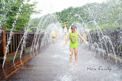 公園內最吸引小朋友的就是城堡造型溜滑梯戲水池,小朋友爬上溜下忙不停,溜滑梯下即是清涼水池真消暑。一旁的親水木棧道會由二旁噴出水柱,再往內走的大廣場也會不時噴出大小不同水柱,每當水柱噴出就會聽到小朋友開心尖叫聲呢。