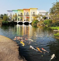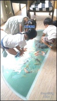 這裡最有名的就是有幾間住宿的房間地板是透明的,可以直接看到魚在下面游,且民宿裡有一個生態池,裡面有各種的魚,讓小朋友可以餵魚,在園區裡面也會看到鴨和鵝跟你一起走在路上。