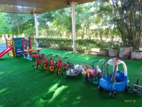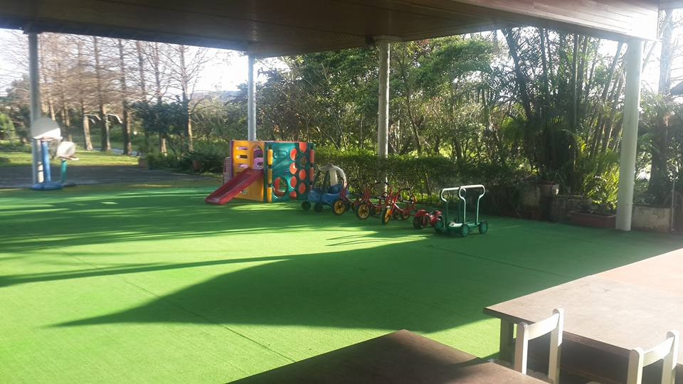因為是幼稚園改建的,所以有超大戶外遊戲區可讓孩子騎腳踏車、溜滑梯、還有沙坑可玩,小孩可以盡情玩樂的好地方。