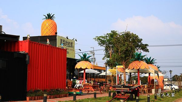 園區內有許多可愛的鳯梨造景,戶外座位區提供遊客免費休憩,俏皮的鳯梨造型遮陽傘、大大的鳯梨涼亭,還有一些投幣式遊樂設施,可以讓小朋友玩。