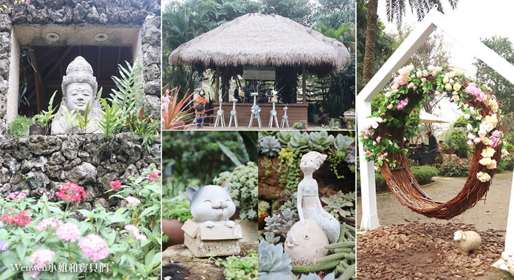 園區入口處左側有一片大沙坑可以讓小朋友玩,種植多種香草植物及百種蕨類與水生植物,配點著峇里島氛圍的建築與裝置,景觀優雅宜人。中庭則新增歐式玫瑰花園與藝術造景,每年11月中旬至12月中旬花季時滿滿的玫瑰花粉嫩動人。