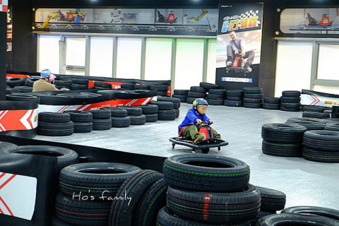 想要單獨駕駛卡丁車需滿120公分以上,幼兒可由家長陪同駕駛,上場之前先看過教學影片,接著戴上頭套與安全帽即可出發,經過一個又一個彎道,進入隧道再往前衝,小小賽車手在行進過程中培養專注力,訓練操縱技巧。