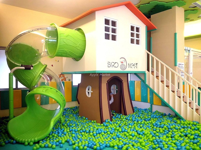 一樓入口處有沙坑、彈力球,進入餐廳內則看到醒目的樹屋溜滑梯球池,一旁是飄飄氣球屋,另一側提供不同積木玩具與積木牆。二樓整層都是遊戲空間,有廚房組、工具桌、辦家家酒組、大積木、車車軌道組、小小賽車場,還有幼兒爬爬區。
