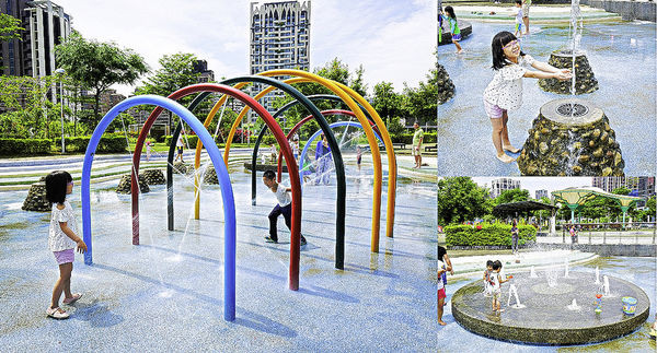 2023年兒童戲水池開放時間是06/18-09/30,6月、9月僅開放假日,7-8月除週一清潔日外每天開放。這裡的戲水池有噴水池、彩虹噴水隧道與小石堆造型噴水柱,每到噴水時間,就會聽到小朋友的歡笑聲。戲水池旁有一座溜冰場,可以帶滑板或是直排輪來玩。兒童遊戲場在另一側,裡面是一般的塑製溜滑梯組,分為大小二座,適合小小孩玩。